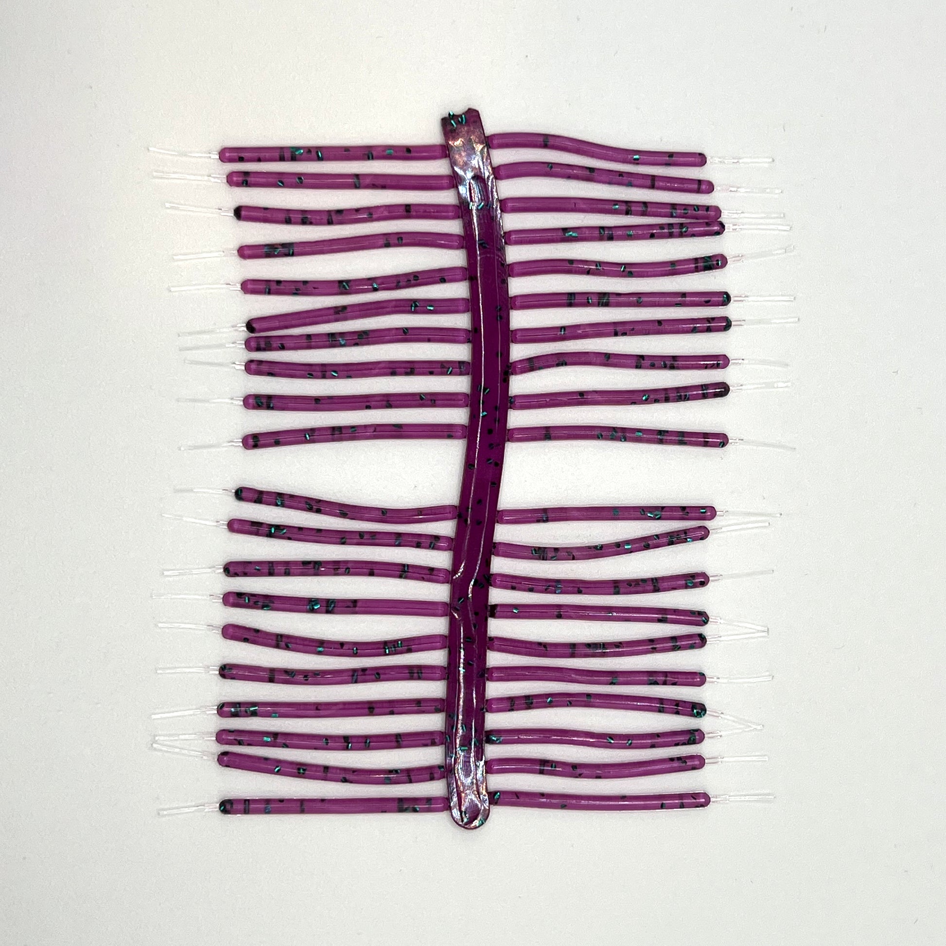 Total of 40 individual Tye-Sticks™ per pack. Each TyeStick is appoximately 1.5" in length. Material is made softer (we like to say chewy) and not as elastic as the other wormy material.