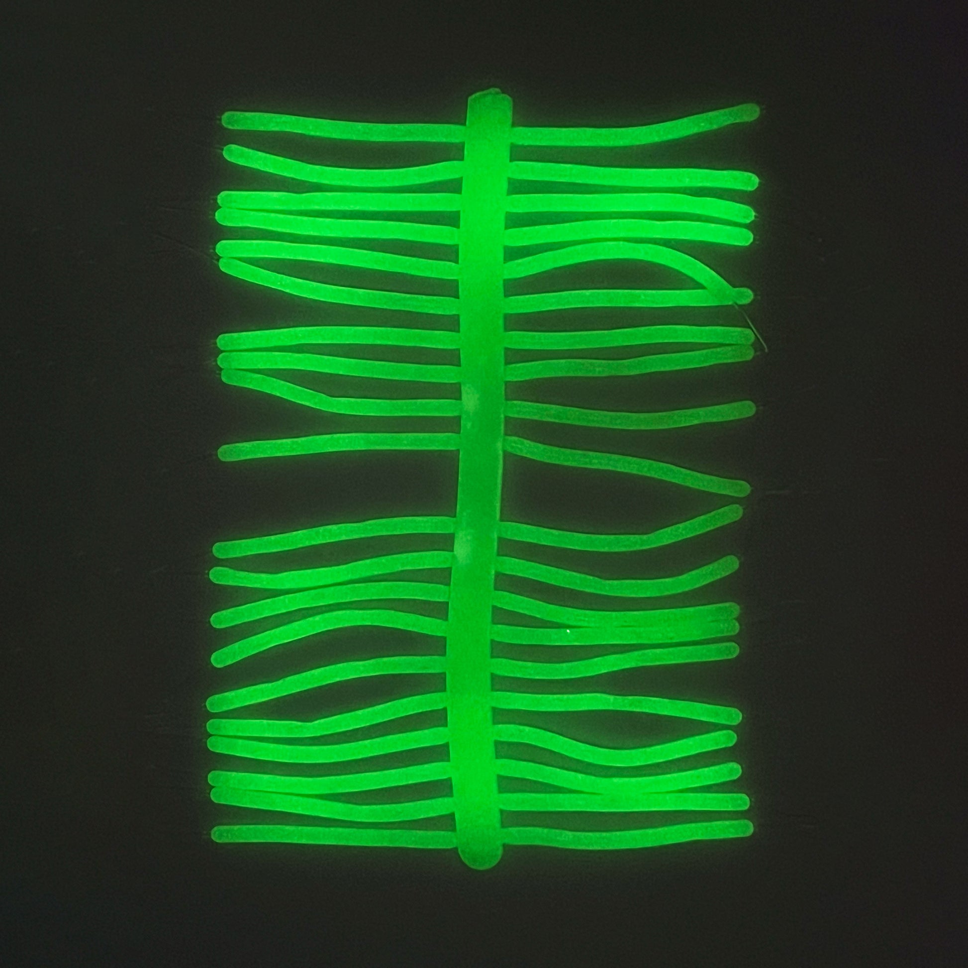 Introducing the Glow-In-The-Dark Squirmy Worm from TyeSticks.com! Get ready to light up your fishing experience with this innovative glow-in-the-dark material. Perfect for night fishing or murky waters, the GDTR Squirmy Wormy material is designed to attract fish from afar with its mesmerizing glow. When not glowing, it sports a vibrant chartreuse color, making it perfect for any pattern that requires a bright green hue. Made from our exclusive Glow material, this squirmy worm is not only durable but also provides a lifelike action in the water, irresistible to fish. Don't miss out on this game-changing addition to your fly vise and box - order your Glow-In-The-Dark Squirmy Wormy material today and outshine the competition on your next fishing trip!